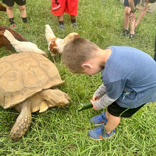 You will get up close to Alpacas, Nigerian Dwarf Goats, Rabbits, Chickens, Kune Kune pigs, Sulcata Tortoiss and Great Pyrenees at the farm.